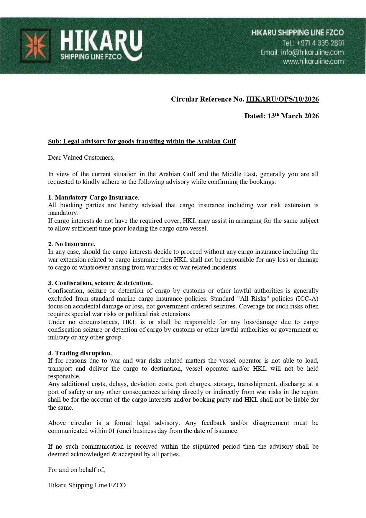Hikaru Shipping Line is proudly headquartered in Dubai – a global nexus and regional hub.